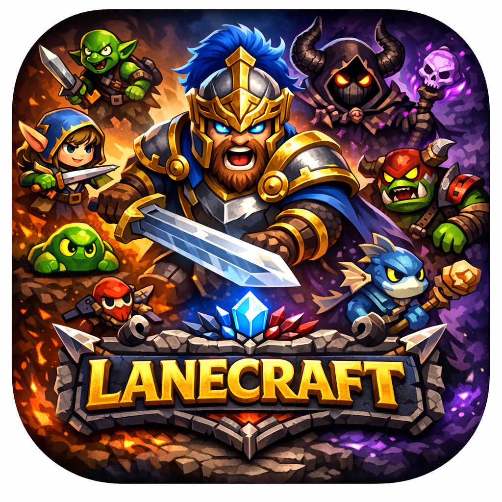 Lanecraft is a real-time strategy game where you pick a race, harvest resources, build your base, and send waves of units down lanes to destroy the enemy headquarters. Each of the 9 races plays differently with unique unit stats, abilities, and resource economies.